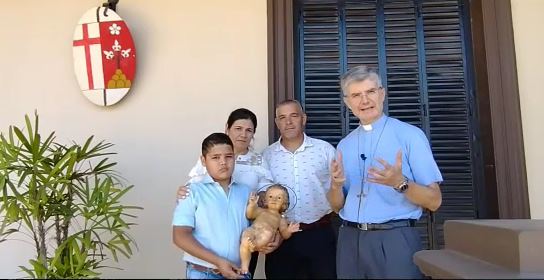 En el marco de la celebración de la Navidad, y acompañado por una familia de la comunidad diocesana y por la imagen del niño Jesús, el obispo de Santo Tomé, monseñor Gustavo Montini, se dirigió a los fieles con un videomensaje navideño.